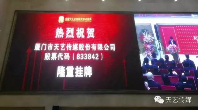 廈門市天藝傳媒股份有限公司于2015年11月13日在北京股轉公司舉行新三板掛牌敲鐘儀式。